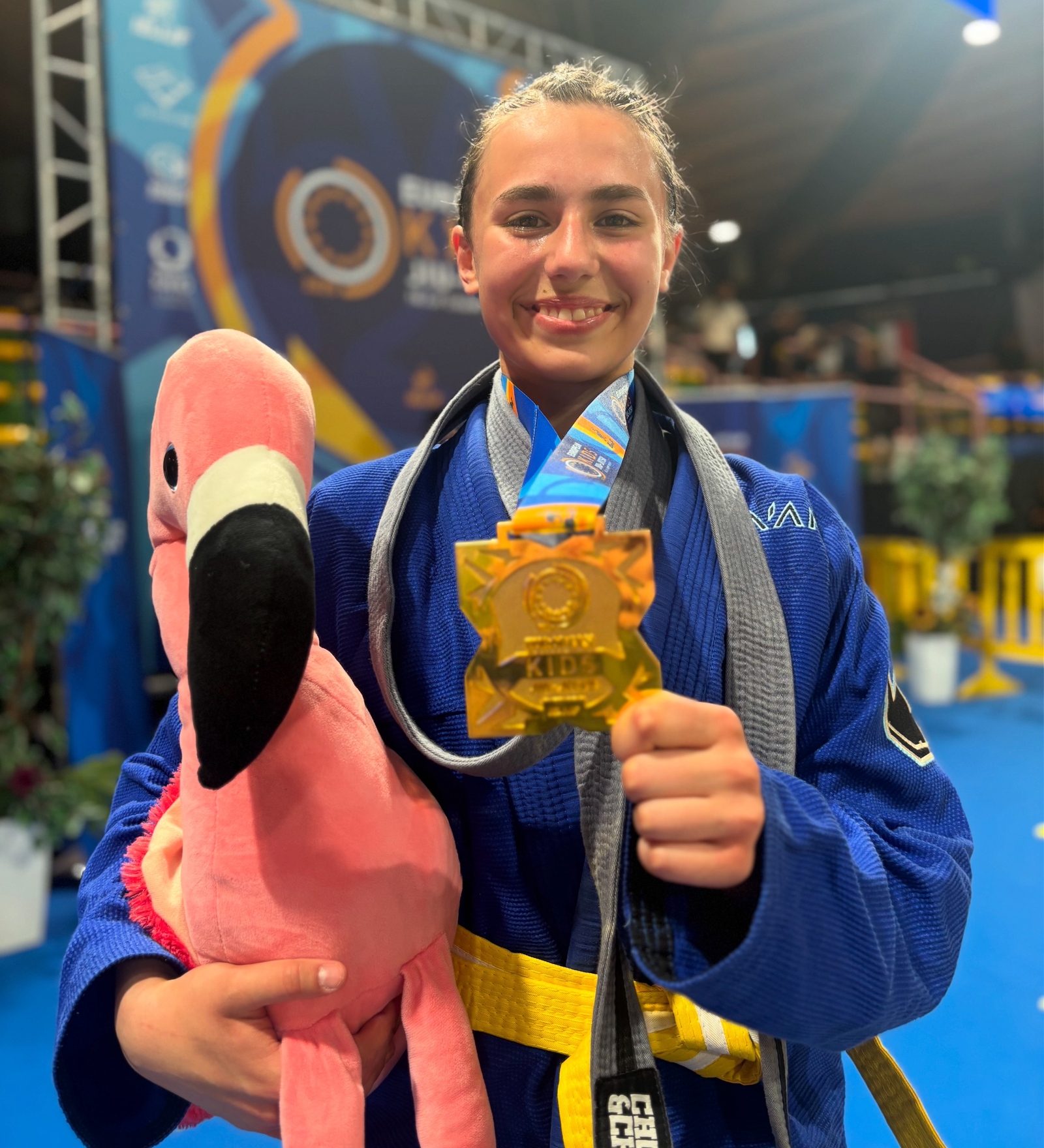 Unser engagiertes und junges Team steht für Fairplay und den Spaß der Kinder und Jugendlichen an erster Stelle. Das Training wird von Denise Krahn, einem BJJ Blackbelt, geleitet. Sie ist seit 2019 Mitglied der deutschen Nationalmannschaft im BJJ und hat zahlreiche Welt- und Europameistertitel gewonnen. Denise trainiert Vollzeit und ist Teil der Spitzensportförderung der Bundeswehr. Zudem besitzt sie die DOSB-Trainerin C Lizenz im Bereich Leistungssport und ist zertifizierte „Nicht-Mit-Mir“-Instruktorin, ein Gewaltpräventionsprogramm des DJJV.
